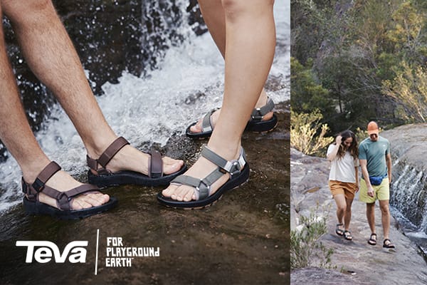 Meet Hydratrek, the new amphibious water sandal from Teva. Inspired by nature’s best problem-solvers, it pairs tree-frog tread with a grippy Sticky Spider Rubber outsole for agile traction on wet or wild terrain.