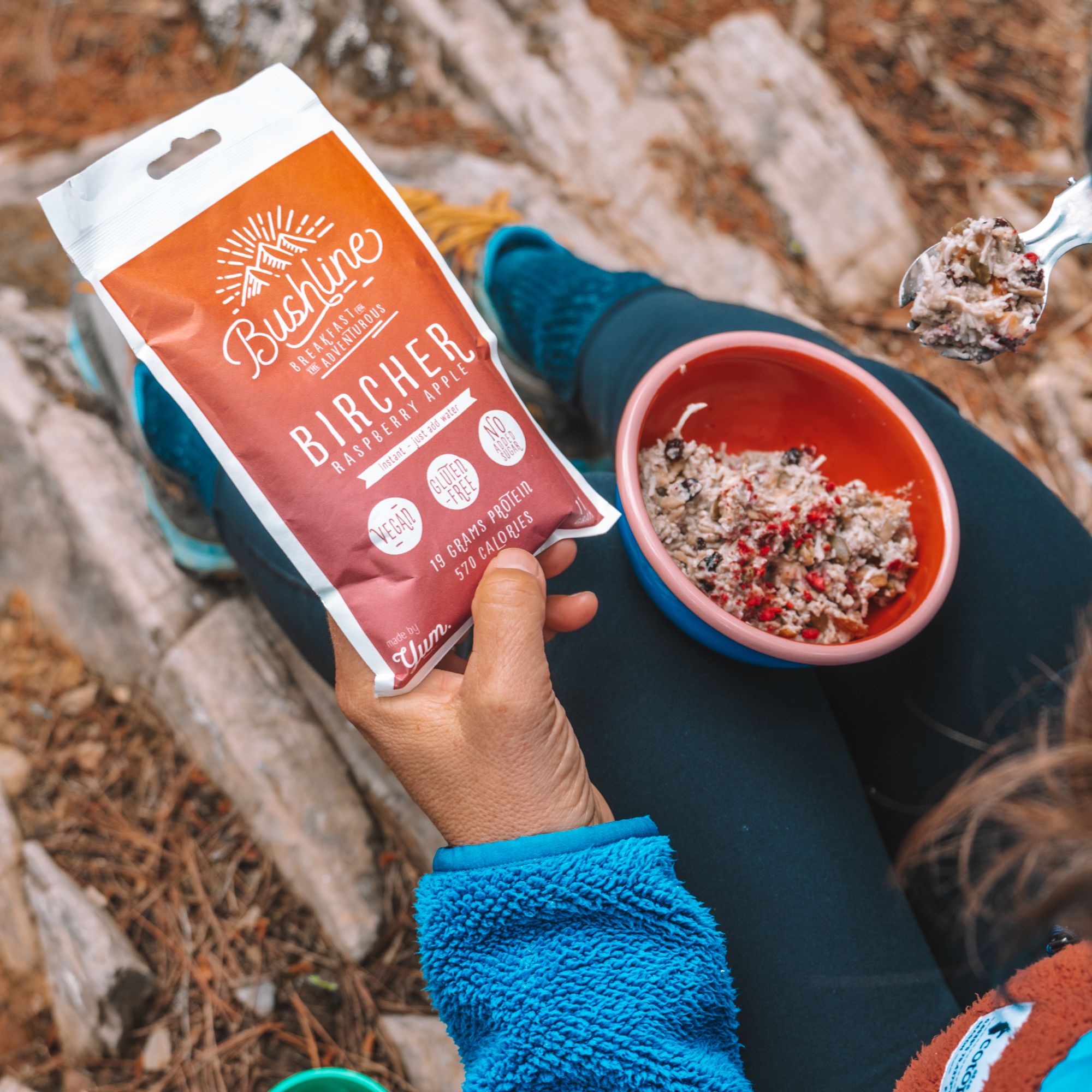 We asked our outdoor adventure friends, and over 90 per cent of them said they carry some kind of bowl, cup or pot – and therein lies the solution. We wanted to create a meal that no longer required the packaging to be the bowl, so we made the Bushline Breakfasts instant, requiring no cooking or rehydrating – just mixed in a bowl with water.